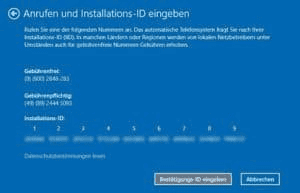 - Vous verrez un identifiant d'installation avec neuf blocs de chiffres. Au-dessus se trouve un numéro de téléphone que vous devez appeler.