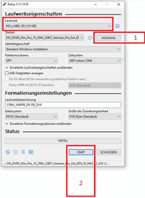 - Cliquez sur “Choisir” et sélectionnez le fichier ISO (#1 dans la capture d'écran 1).